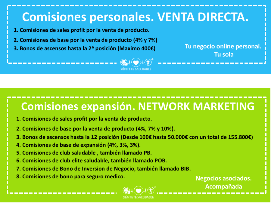 Consiste no solo en ayudar a personas a mejorar su físico y su salud recomendándole nuestro club sientete saludable, sino también podemos expandirnos y ayudar a personas a ganar dinero desde casa y sin dejar lo que están haciendo, es decir, darle esta increíble oportunidad, de recomendar nuestro club a otras personas para que ellos también tengan su propio negocio igual que el tuyo. Estos negocios son negocios asociados al tuyo, pero son negocios independientes. Cada uno es responsable de su negocio. Los dueños de esos negocios se convierten en tus socios o partner y se convertirán en tu propia familia saludable.