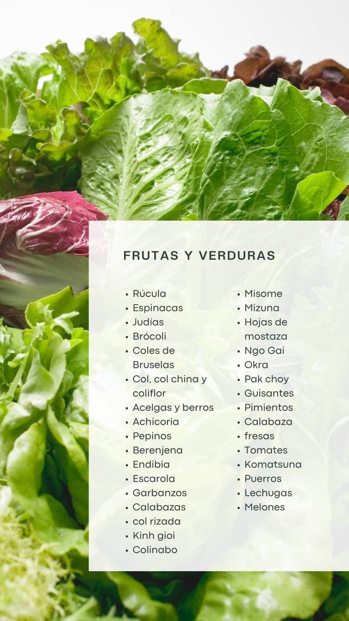 Toda clase de verduras, frutas, hortalizas, hierbas y flores, siempre y cuando no crezcan bajo tierra, sus raíces se ensanchen o sean árboles.