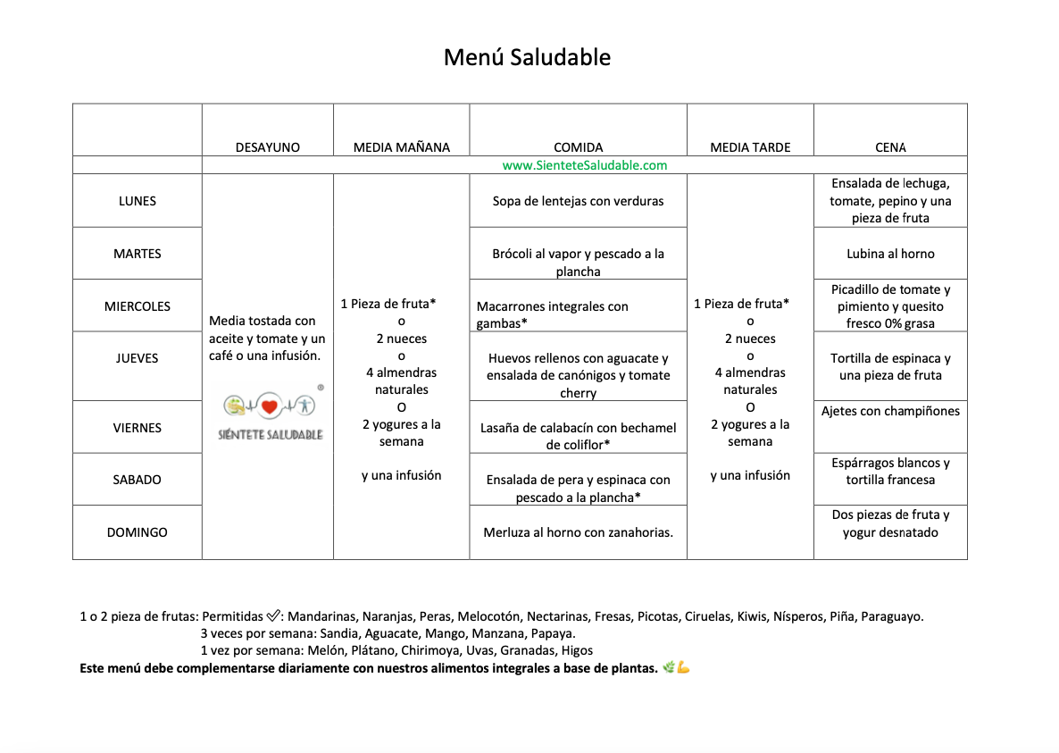 Aquí os dejamos la recomendación de un menú saludable para esta semana. Es un menú para que te sirva de guía, pero puedes cambiar un alimento por otro si te apetece. No te pierdas el vídeo que se encuentra en el apartado cambios de alimentos donde te explico personalmente como puedes hacerlo. Mira los cambios que quieras hacer y coméntaselo a tu asesora, para saber que están haciendo correctamente el cambio Espero que te guste y compartas tus platos en el grupo de Facebook. Os esperamos por allí