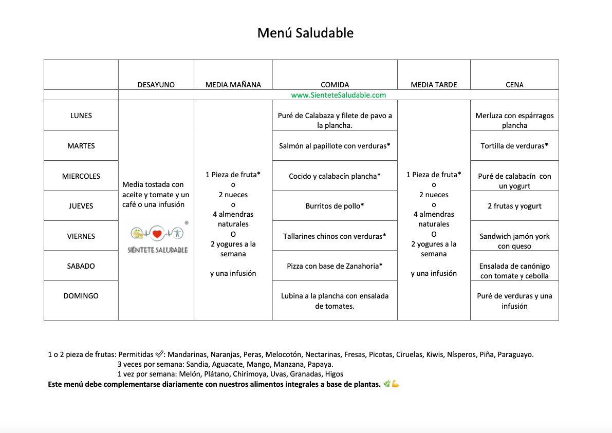 Aquí os dejamos la recomendación de un menú saludable para esta semana. Es un menú para que te sirva de guía, pero puedes cambiar un alimento por otro si te apetece. No te pierdas el vídeo que se encuentra en el apartado cambios de alimentos donde te explico personalmente como puedes hacerlo. Mira los cambios que quieras hacer y coméntaselo a tu asesora, para saber que están haciendo correctamente el cambio Espero que te guste y compartas tus platos en el grupo de Facebook. Os esperamos por allí