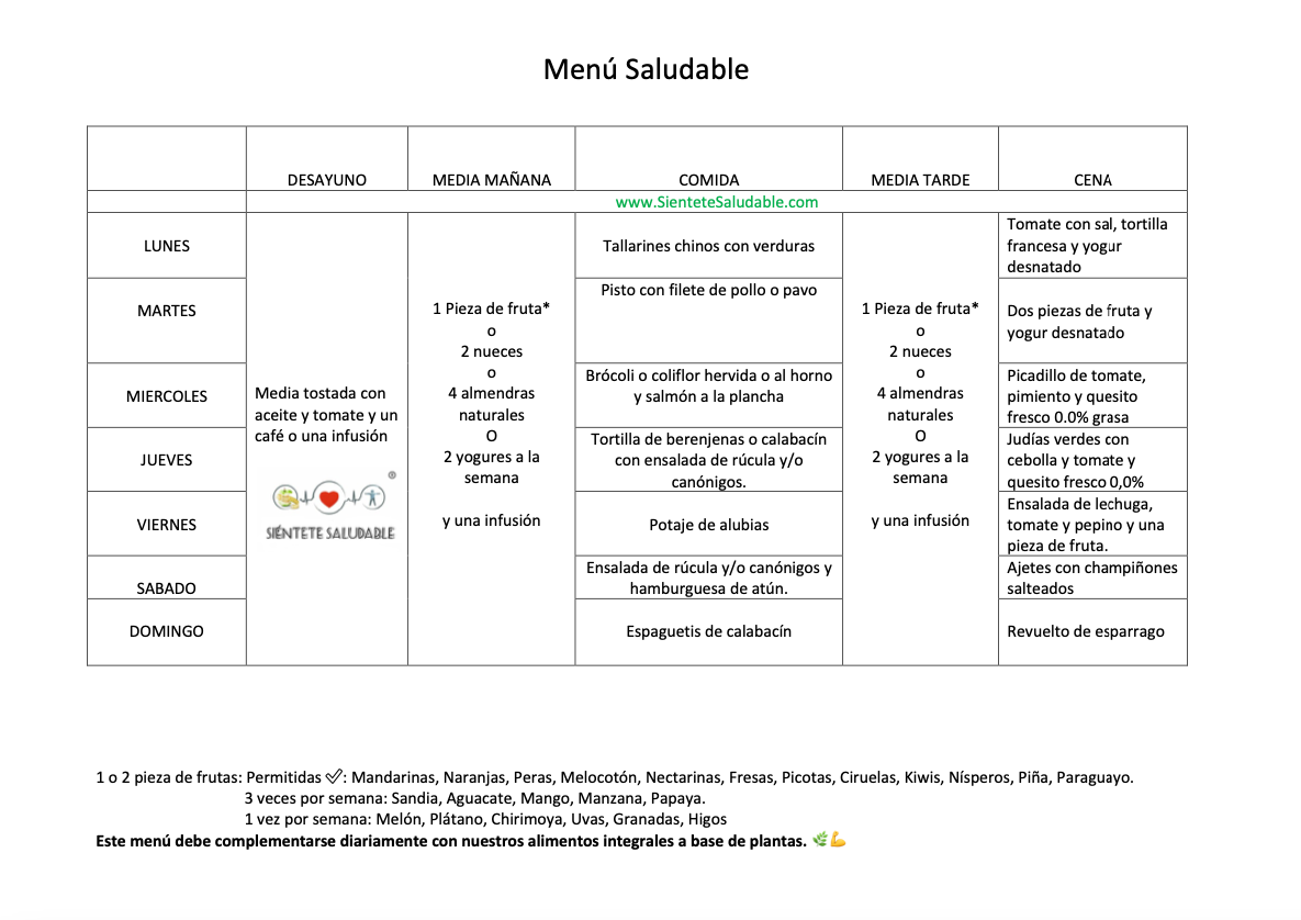 Aquí os dejamos la recomendación de un menú saludable para esta semana. Es un menú para que te sirva de guía, pero puedes cambiar un alimento por otro si te apetece. No te pierdas el vídeo que se encuentra en el apartado cambios de alimentos donde te explico personalmente como puedes hacerlo. Mira los cambios que quieras hacer y coméntaselo a tu asesora, para saber que están haciendo correctamente el cambio Espero que te guste y compartas tus platos en el grupo de Facebook. Os esperamos por allí