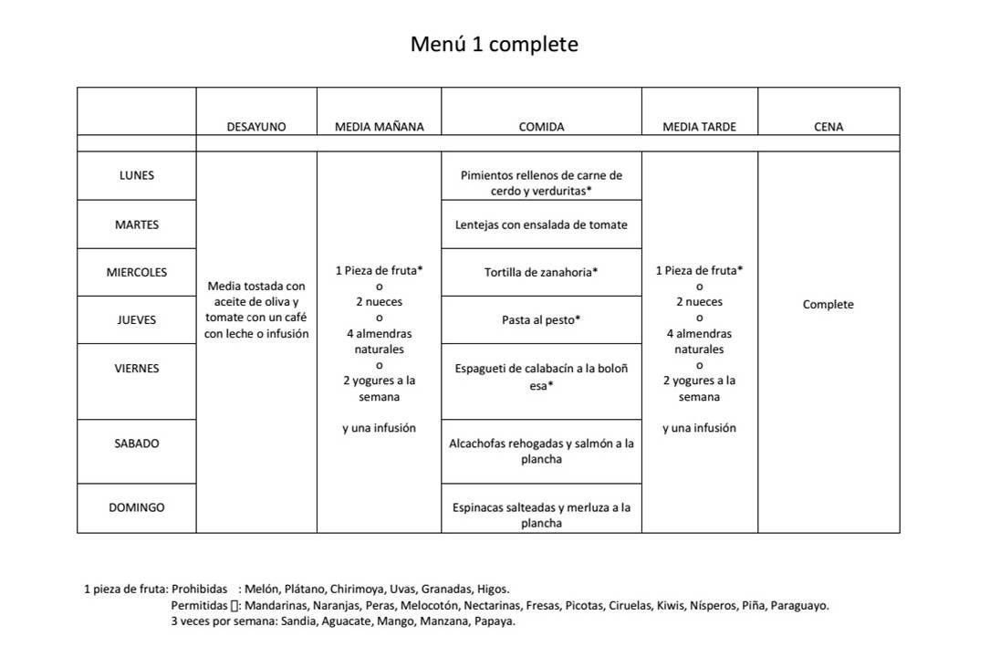 Si hay alguna verdura que no os gusta modificarla por otra que esta en el listado y comentárselo a vuestr@ asesor@, tanto los cambios de alimentos, como los cambios de un día por otro.