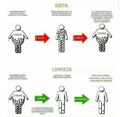 Si hacemos una dieta tradicional con ejercicio y eliminamos las células grasas pero no eliminarnos las toxinas, Se volverá a crear otra vez las células grasas para proteger a las toxinas y se produce lo que llamamos efecto rebote.