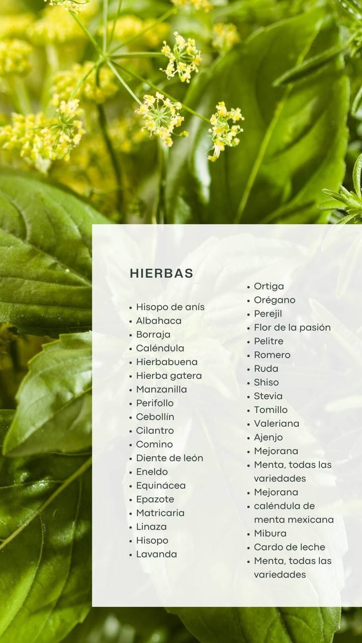 Toda clase de verduras, frutas, hortalizas, hierbas y flores, siempre y cuando no crezcan bajo tierra, sus raíces se ensanchen o sean árboles.