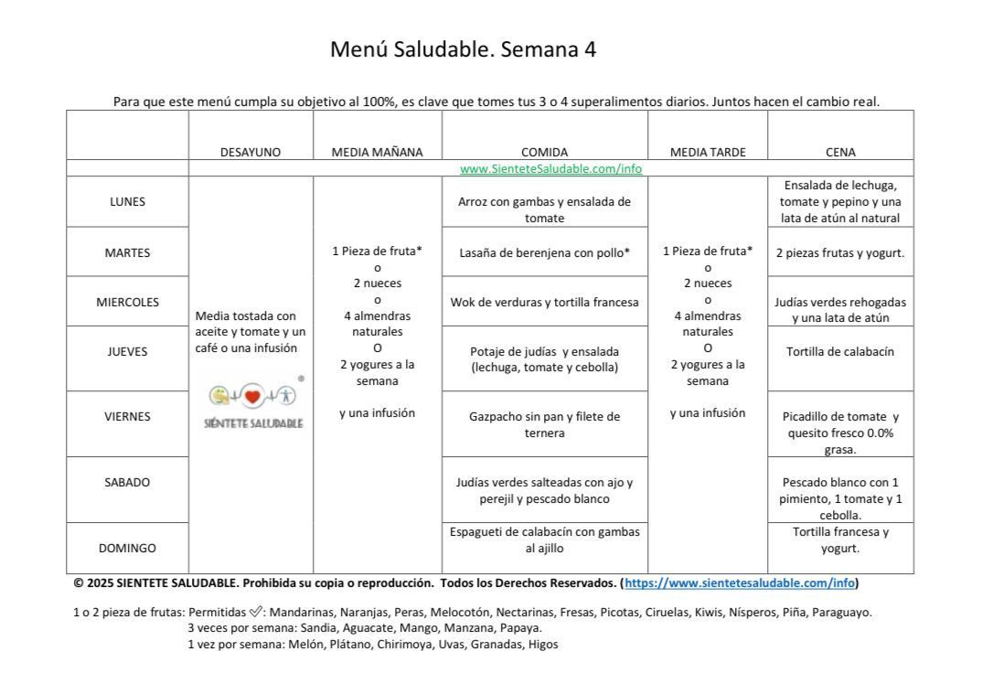Aquí os dejamos la recomendación de un menú saludable para esta semana. Es un menú para que te sirva de guía, pero puedes cambiar un alimento por otro si te apetece. No te pierdas el vídeo que se encuentra en el apartado cambios de alimentos donde te explico personalmente como puedes hacerlo. Mira los cambios que quieras hacer y coméntaselo a tu asesora, para saber que están haciendo correctamente el cambio Espero que te guste y compartas tus platos en el grupo de Facebook. Os esperamos por allí