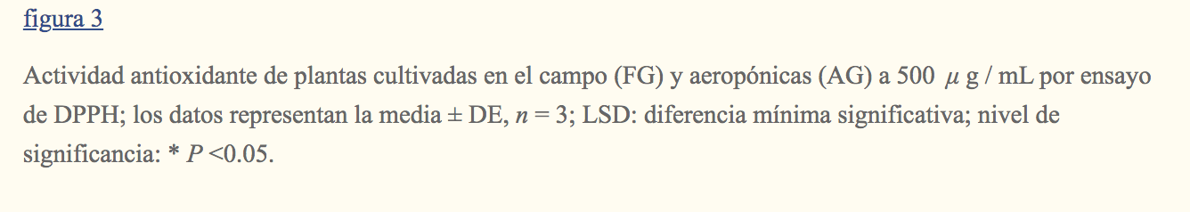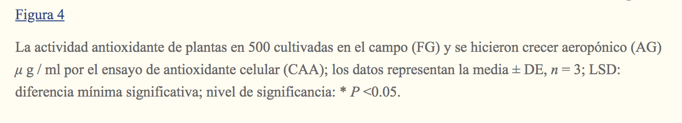 En conclusión, el estudio revela que las plantas cultivadas en sistemas aeropónicos muestran un mayor rendimiento de producto y propiedades antioxidantes comparables (utilizando DPPH y ensayos basados en células) a las cultivadas en el suelo.